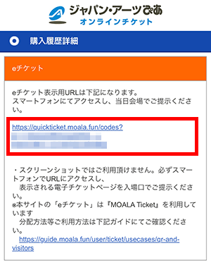 スマートフォンにチケット情報を表示し、入場時にご提示いただきます。